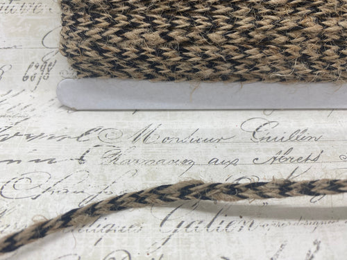 1/4 inch Black and Tan Chevron Jute Braid Burlap Trim