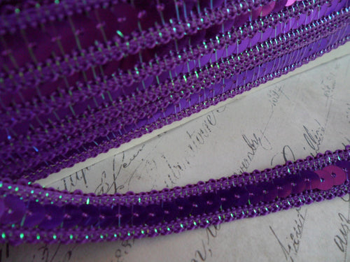 1/2" Wide Royal Purple Sequin Ribbon Trim with Metallic Stitched Edging
