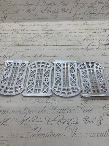 4 Silver Foil German Dresden Scrap Decorative Window Gates