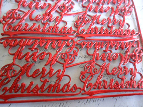 4 Metallic Red Foil Embossed German Dresden Scrap Merry Christmas