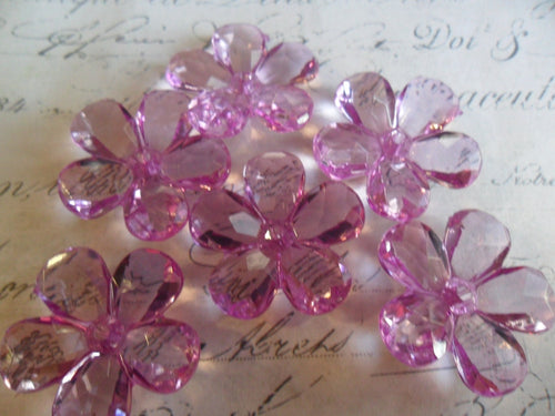 6 pc Clear Acrylic Faceted Jewel Flowers
