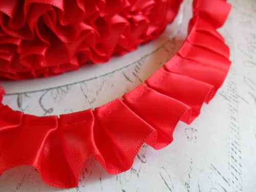 7/8 inch wide Christmas Red Satin Pleated Ruffle Trim