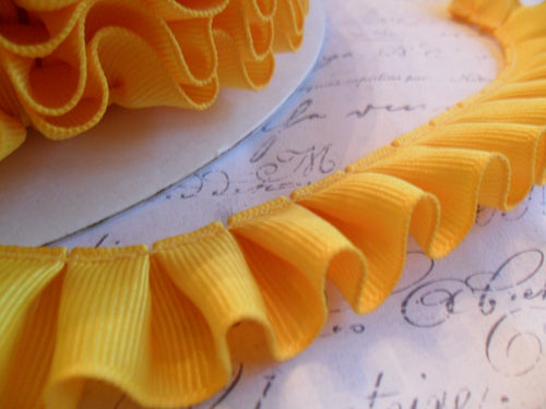 7/8 inch wide Pleated Buttercup Yellow Grosgrain Ribbon Ruffle