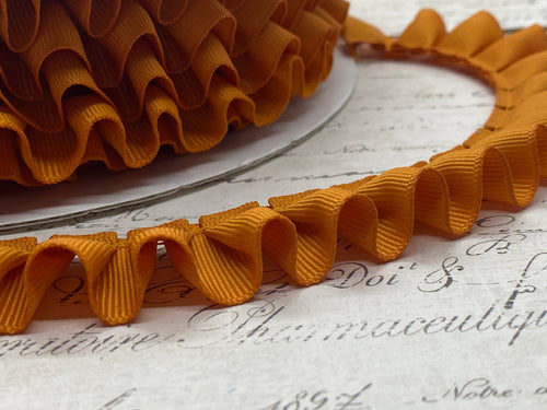 7/8 inch wide Pleated Golden Autumn Grosgrain Ribbon Ruffle