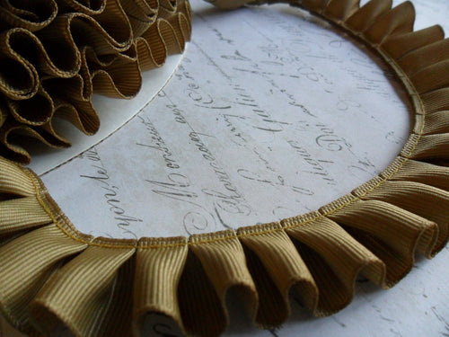 7/8 inch wide Pleated Fawn Grosgrain Ribbon Ruffle