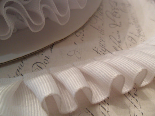 7/8 inch wide Pleated White Grosgrain Ribbon Ruffle