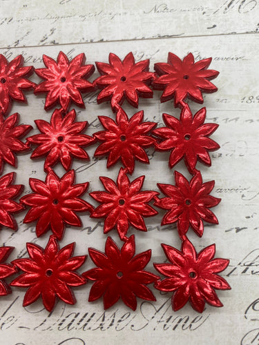 8 Red Foil Vintage Style German Dresden Scrap Poinsettias
