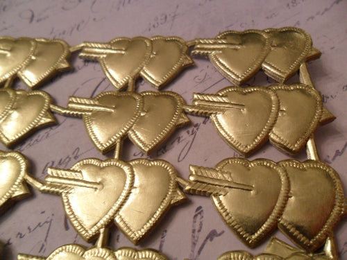 8 Gold Embossed Foil German Dresden Scrap Double Hearts with Arrows approx 1.5 across