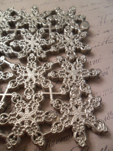 8 Silver Embossed German Dresden Scrap Snowflakes approx 1.5 across