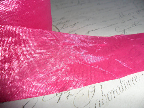 1.5 inch Hot Raspberry Pink Sheer Silky Crushed Ribbon