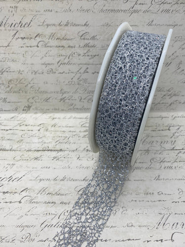 1.5 inch Silver Glitter Web Mesh