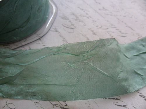 1.5 inch Silver Sage Silky Sheer Crushed Ribbon