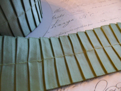 1.5 inch Silvered Sage Pleated Satin Ribbon Trim