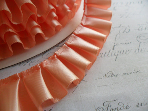 Perfect Peach Satin Box Pleat Ruffle 7/8 wide ribbon trim
