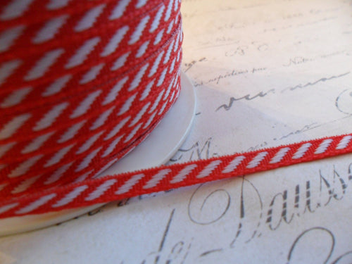 Petite Diagonal White and Red Stripe Ribbon 1/8 inch wide