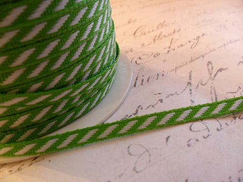 Petite White and Spring Green Diagonal Stripe Ribbon 1/8 inch wide