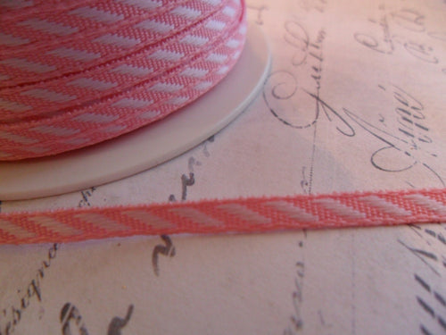 Petite Diagonal White and Pink Stripe Ribbon 1/8 inch wide