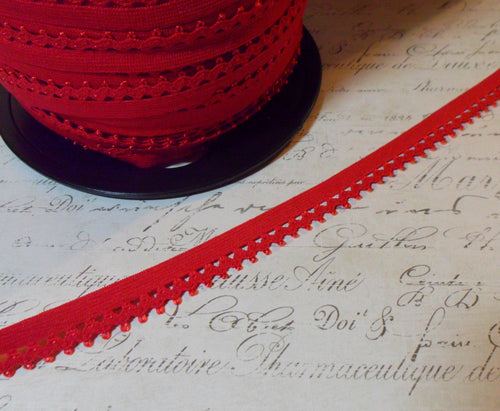 Petite Cherry Red Elastic Trim with Ric Rac Edge Approx 1/2" width