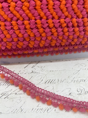 Orange and Hot Pink Varigated Petite Pom Pom Trim 1/2 inch