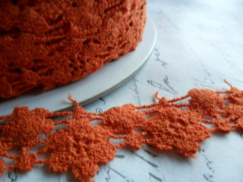 Orange Vintage Style Crochet Scalloped Rose Lace Trim