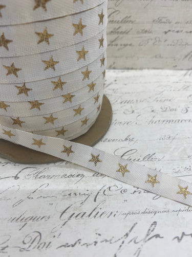 Patriotic Gold Stars on White 3/8 inch ribbon