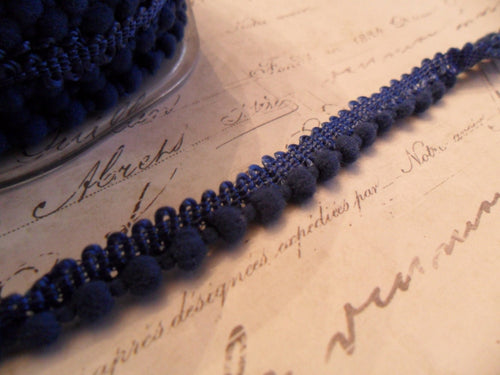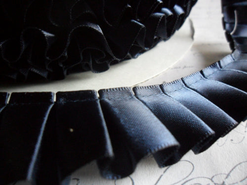 Navy Blue Satin Box Pleat Ruffle Trim 7/8 inch