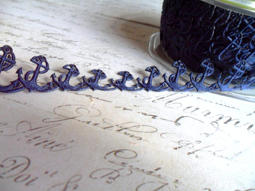 Navy Blue Anchor Shaped Satin Ribbon Trim, approx 3/4" wide