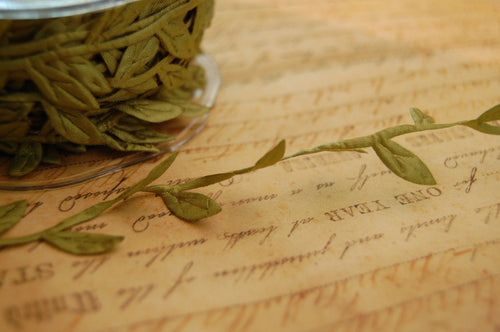 Olive Green Trailing Vine of Leaves Ribbon Trim