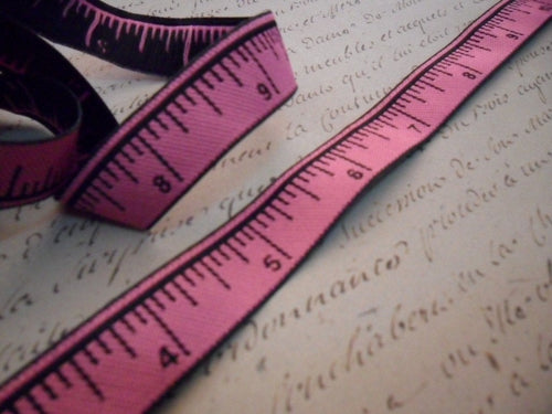 One Half Inch Wide Pink and Black Measuring Tape Ribbon Trim