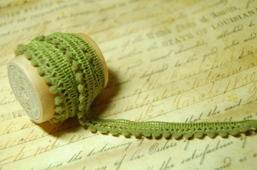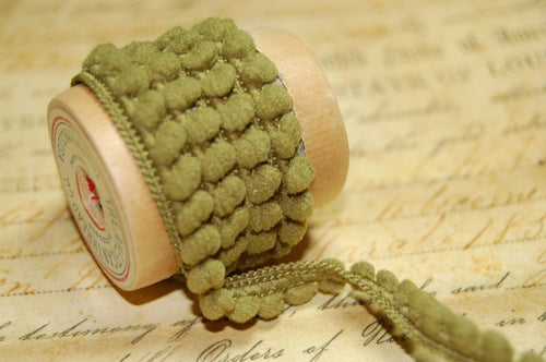 Olive Green Grosgrain Box Pleat Ruffle Trim 7/8 inch
