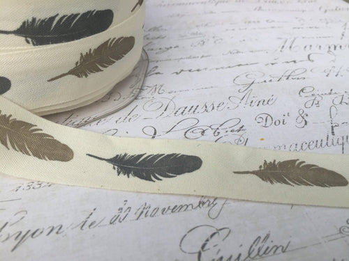 Natural Cotton Canvas 3/4 inch wide printed with feathers