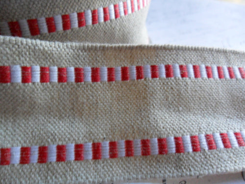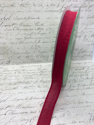 Natural Burlap and Red woven Ribbon 1.5 inches wide with wired edge