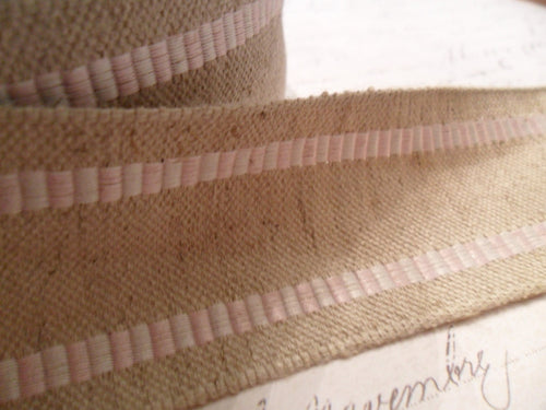 Natural Burlap and Pink woven Ribbon 1.5 inches wide with wired edge