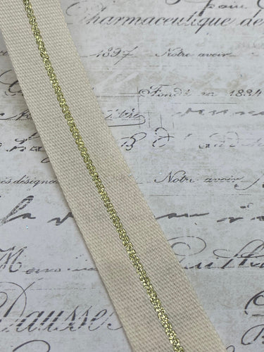 Natural Twill with Metallic Gold Stripe 7/8 wide ribbon trim