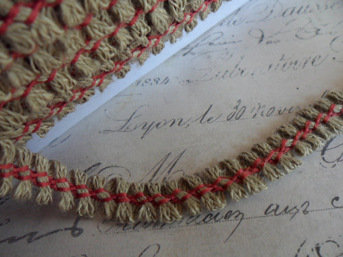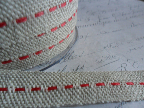 Natural Linen Looped Braid with Decorative Red Stitching approx 3/8 inch wide