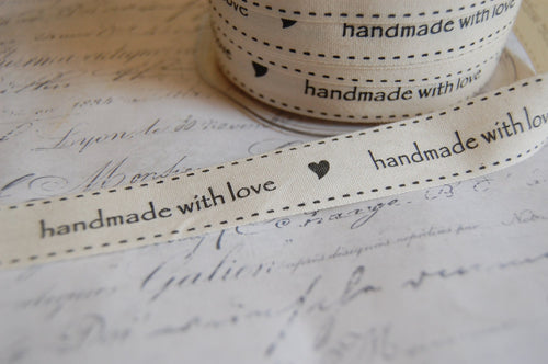 Natural Cotton Canvas 3/4" wide "Handmade With Love" Print