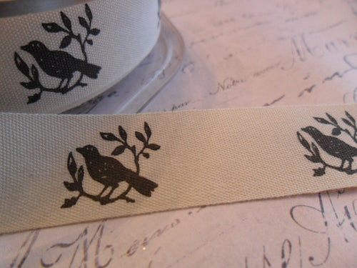 Natural Cotton Canvas 3/4 inch wide with Birds and Branches