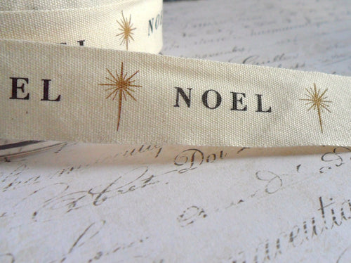 Natural Cotton Canvas 3/4 inch wide, Noel and Star Ribbon