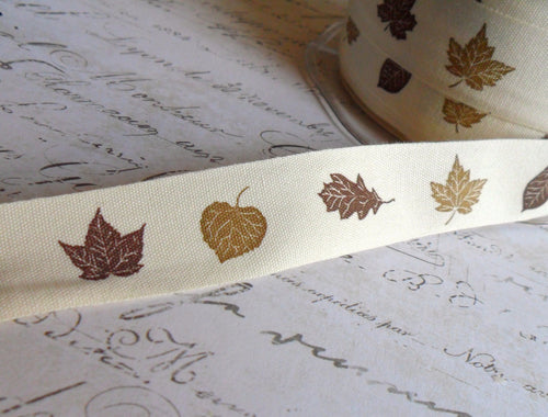 Natural Cotton Canvas 3/4 inch wide, Two Tone Fall Leaves