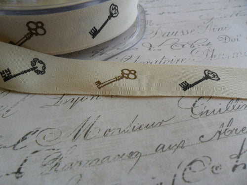 Natural Cotton Canvas 3/4 inch wide with Black and Gold Antique Keys