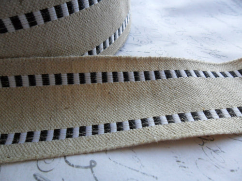 Natural Burlap and Black woven Ribbon 1.5 inches wide with wired edge