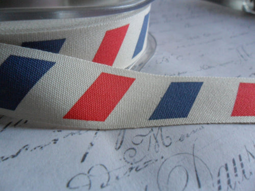 Natural Cotton Canvas 3/4 inch wide with Red and Blue Airmail stripes