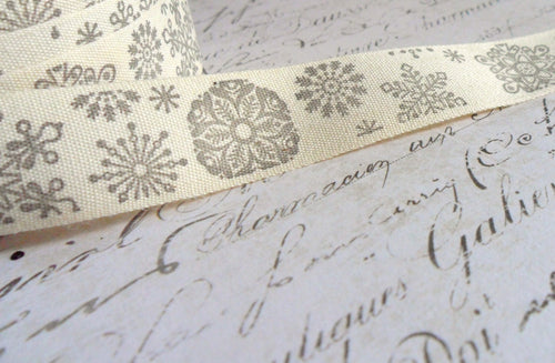 Natural Cotton Canvas 3/4 inch wide, Snowflakes