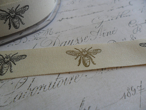 Natural Cotton Canvas 3/4 inch wide with Black and Gold Bumble Bees