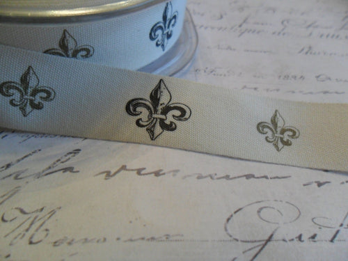 Natural Cotton Canvas 3/4 inch wide with Fleur De Lis