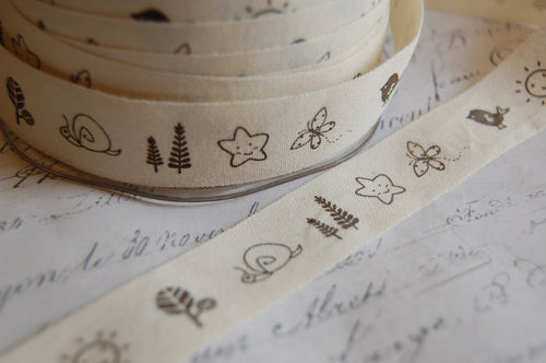Natural Cotton Canvas 3/4 inch wide Kawaii printed icons