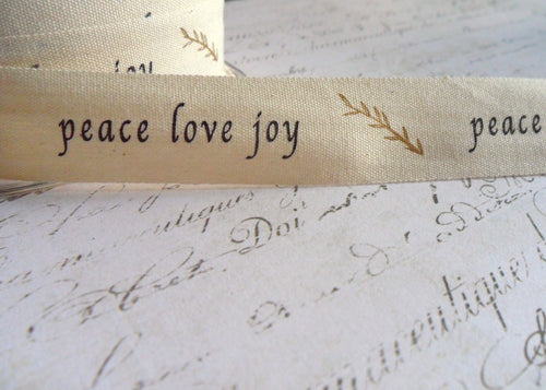 Natural Cotton Canvas 3/4 inch wide, Peace Love Joy