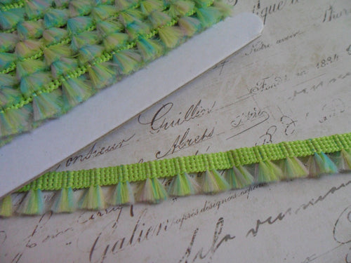 Lime Green and Teal Brush Fringe Trim with irrdescent sparkle, approx 1/2 inch wide
