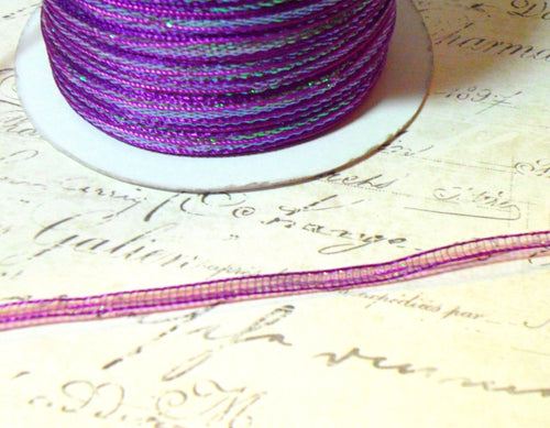 Magenta Pull String Organza Ribbon with Iridescent Center Approx 1/8" Wide