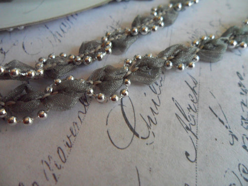 Grey Sheer Organza and Silver Bead scalloped trim approx 1/2" wide